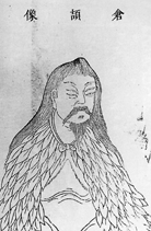 蒼頡像 文字を考案したと伝えられる4ツ目の蒼頡は、 史上最高の”龍顔”と伝えられ、ここでも印文 四龍を示す。 |